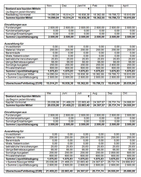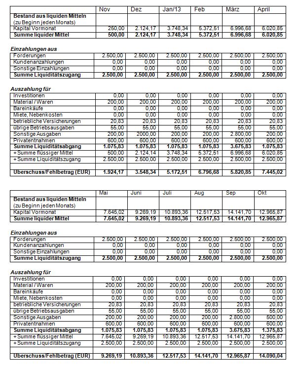 - 7.3. 24-monatiger Liquiditätsplan ausgehend vom Monat Oktober 2012